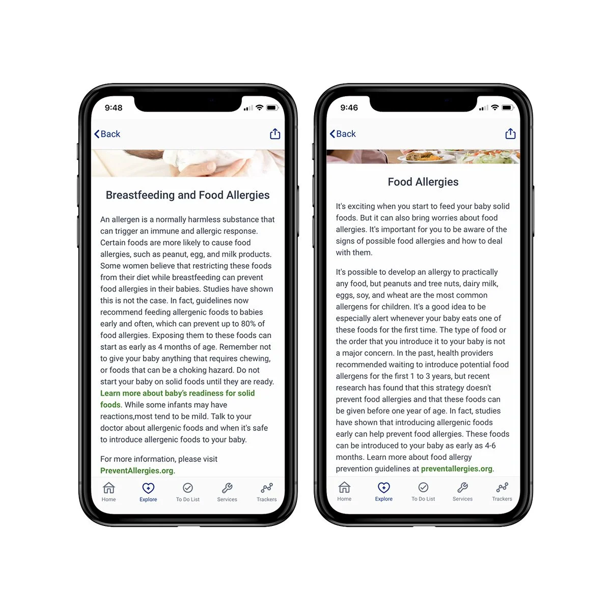 With our evidence-based tools, Providence updated the Circle App to provide food allergy prevention resources to their patients. All patients using the app now receive reminders about early allergen introduction when their baby is 2, 4, 6, & 9 months old, with links to resources on food allergy prevention.